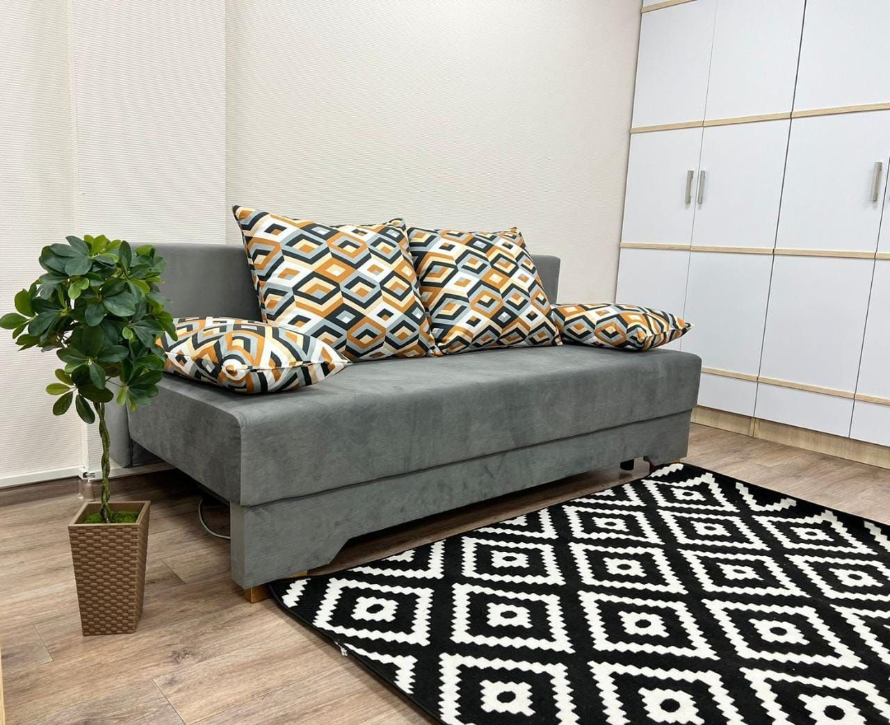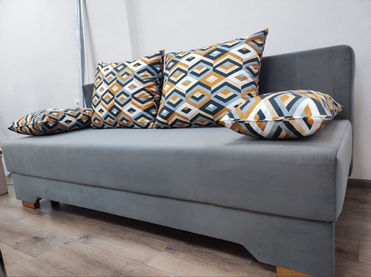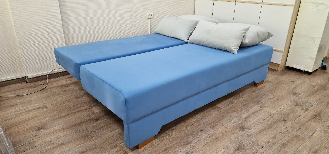 Диван прямой "евро-софа". Практичный, удобный диван с ровным спальным местом, оригинальными подушками и вместительным коробом для белья. Стандартные формы, отсутствие лишних деталей делают данную модель несравнимой классикой среди диванов. В основании дивана лежит ППУ повышенной плотности высотой 80 мм, благодаря чему данная модель получается мягкой и комфортной для ежедневного сна и отдыха.