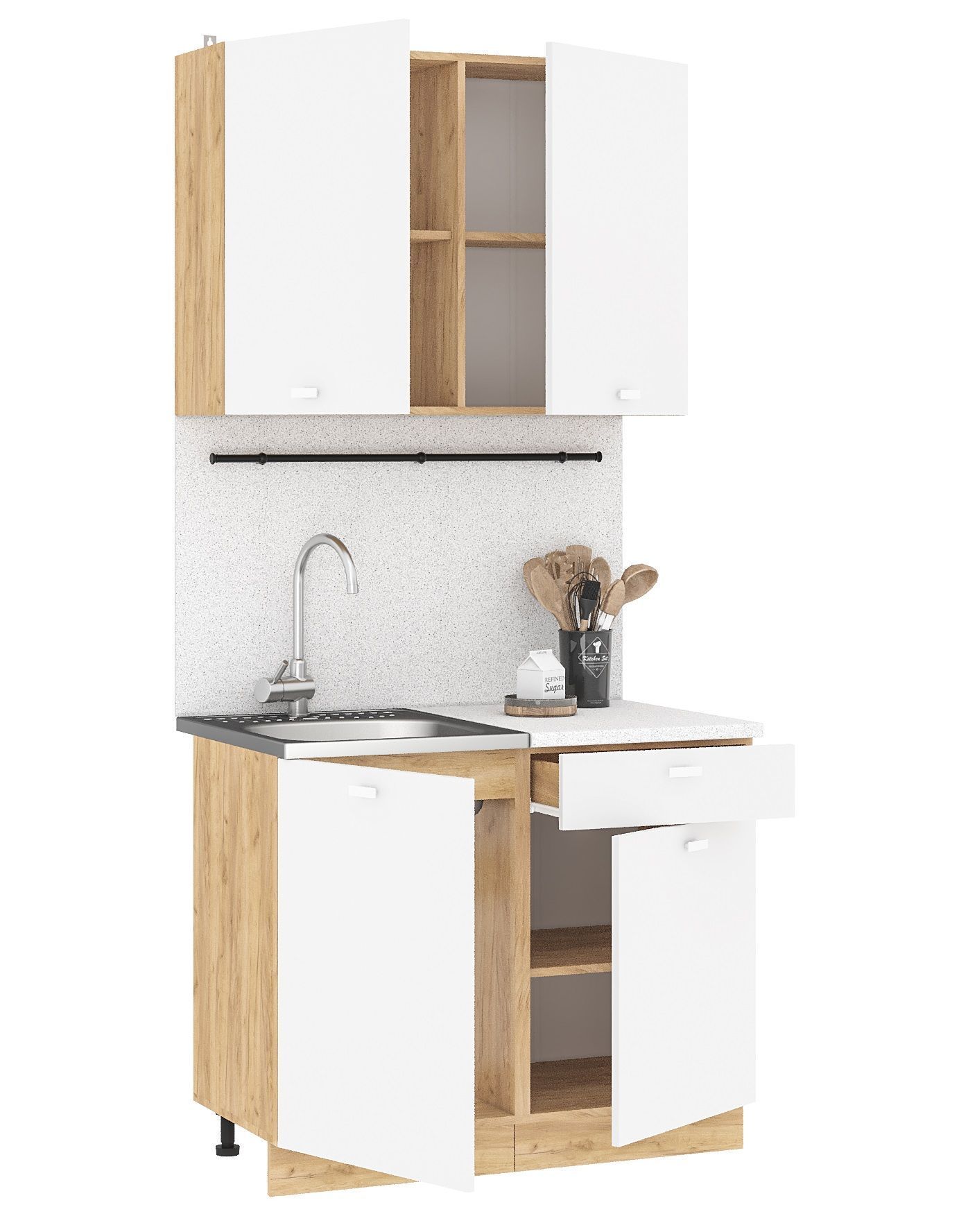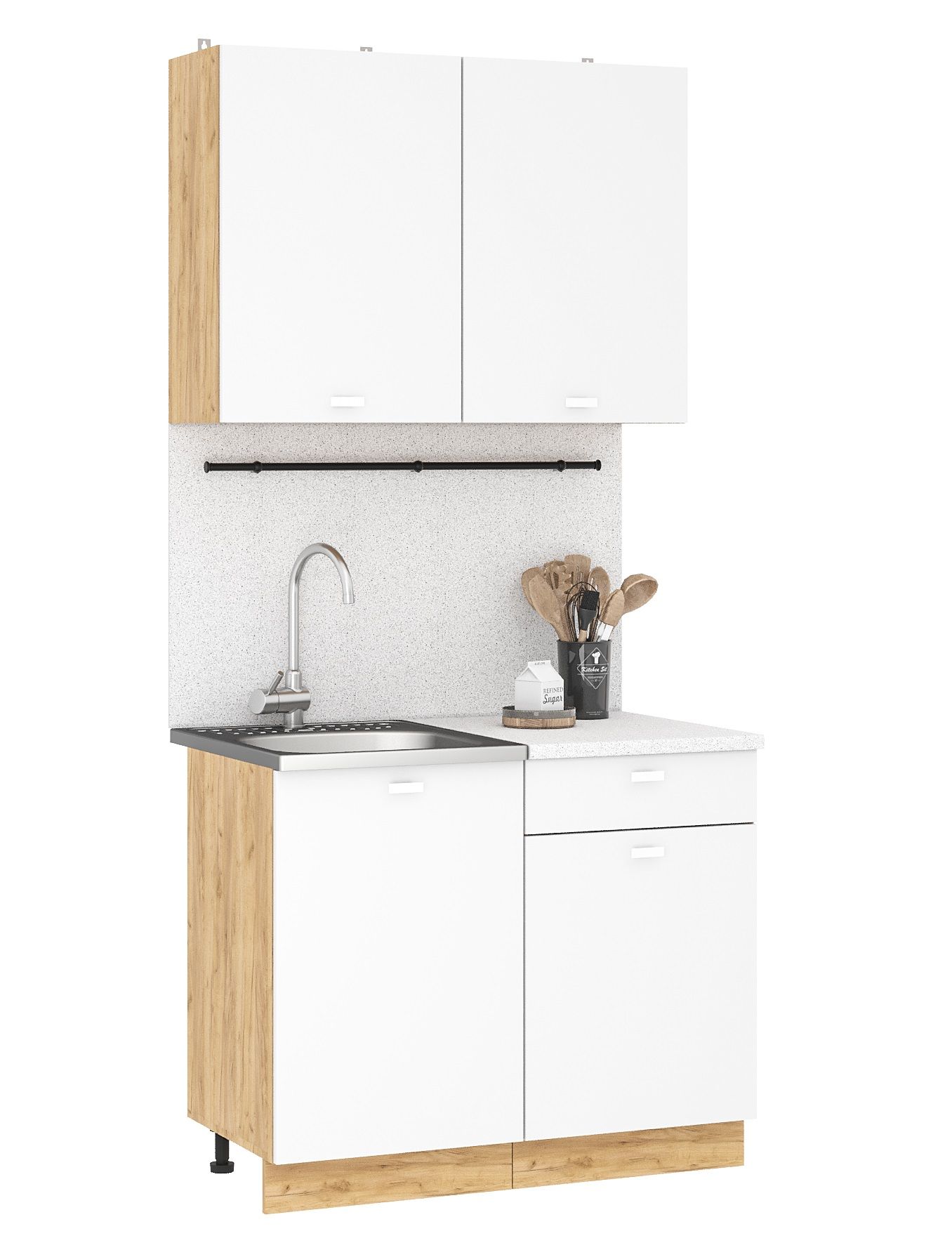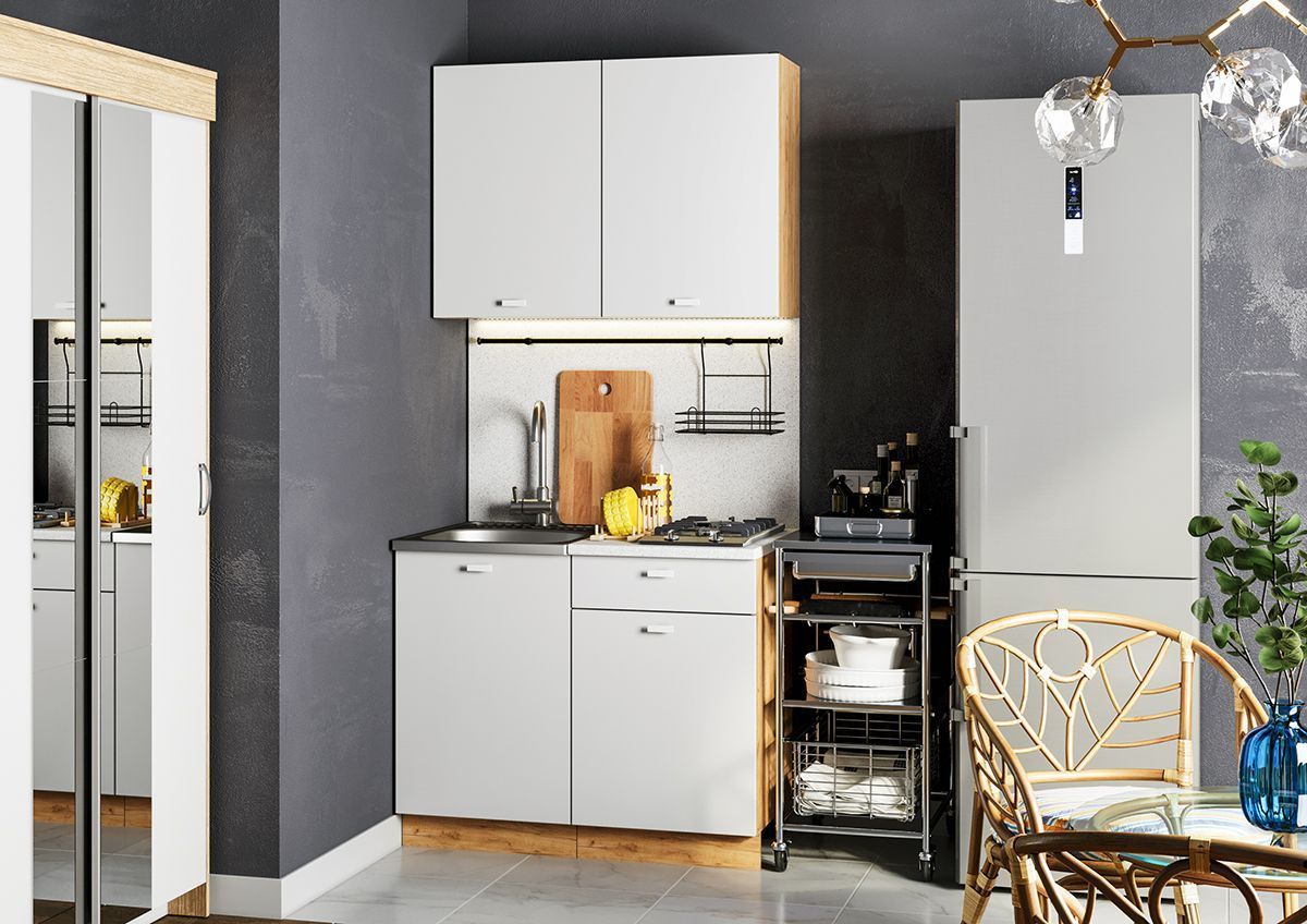 Кухонный гарнитур Дана - практичный комплект из ЛДСП длиной 1,0 метра в современном стиле спроектирован для удобного ежедневного использования.