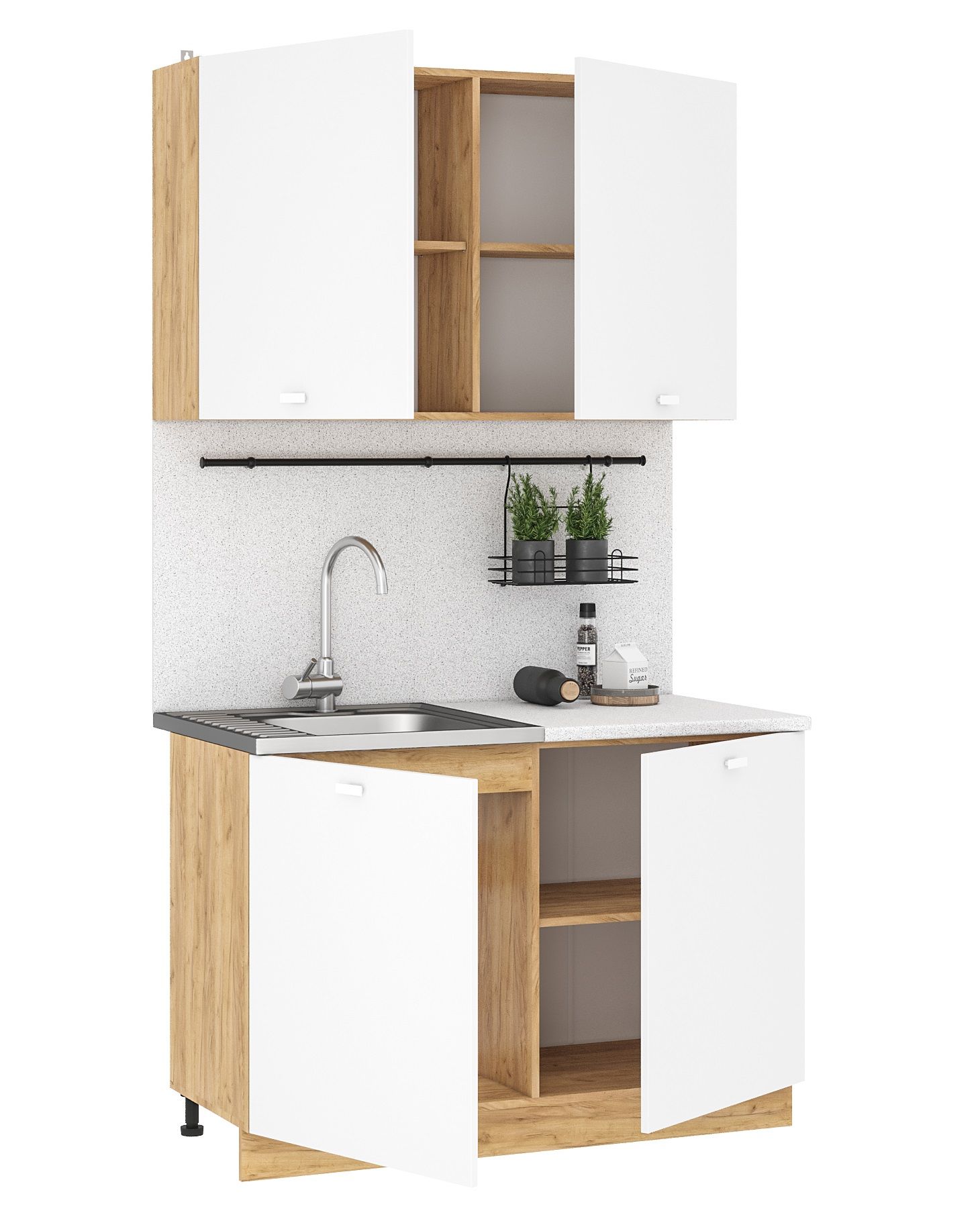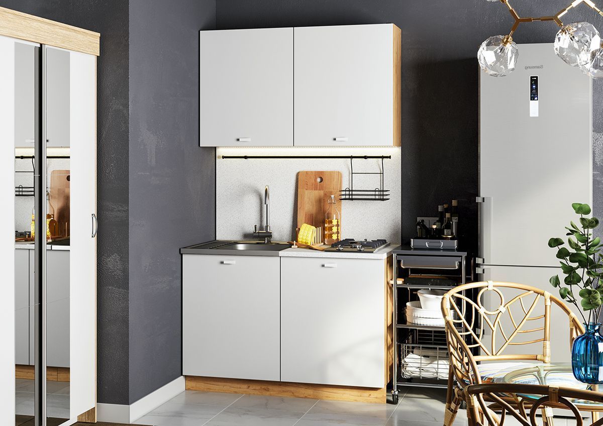 Кухонный гарнитур Дана - практичный комплект из ЛДСП длиной 1,2 метра в современном стиле спроектирован для удобного ежедневного использования.