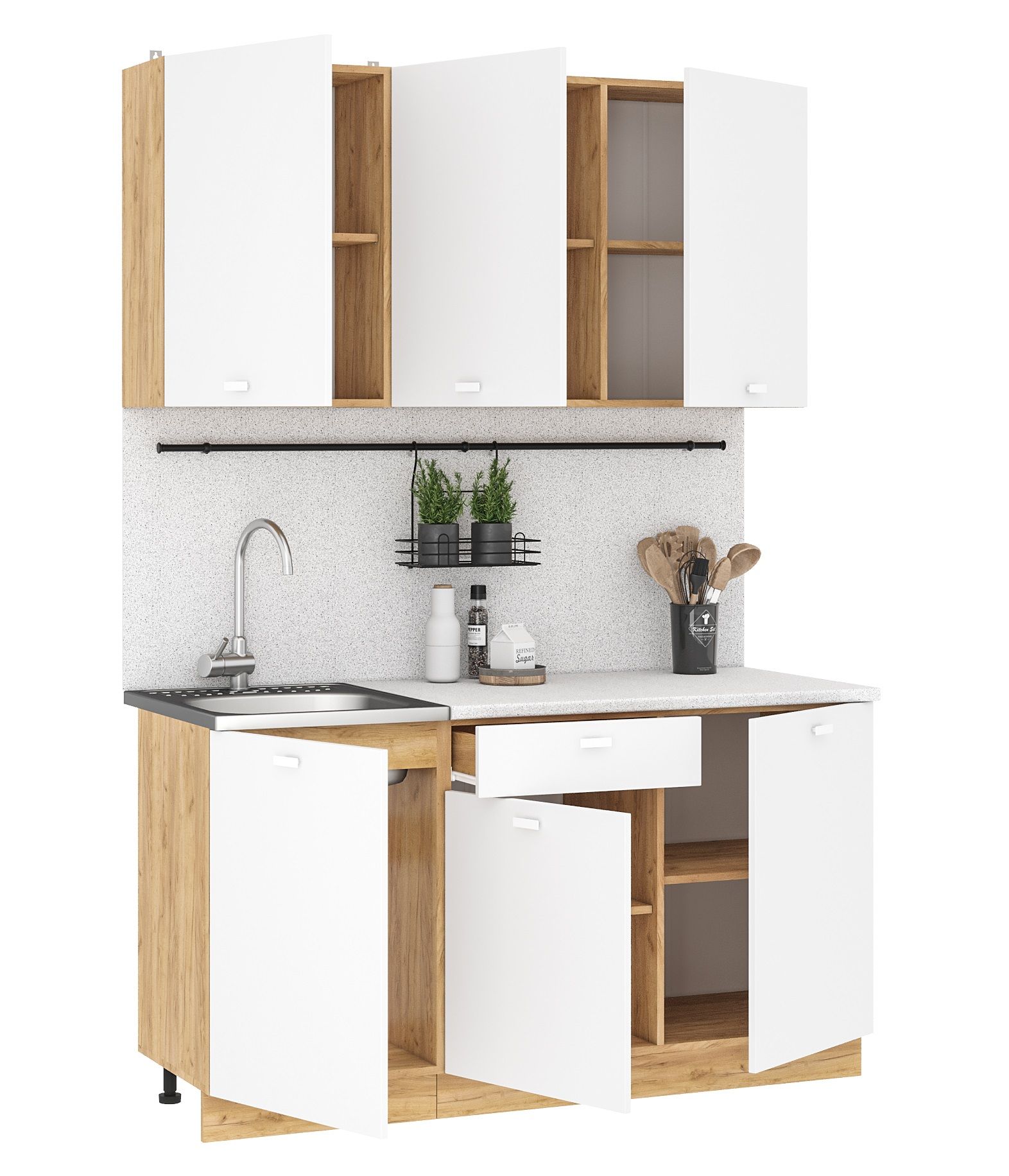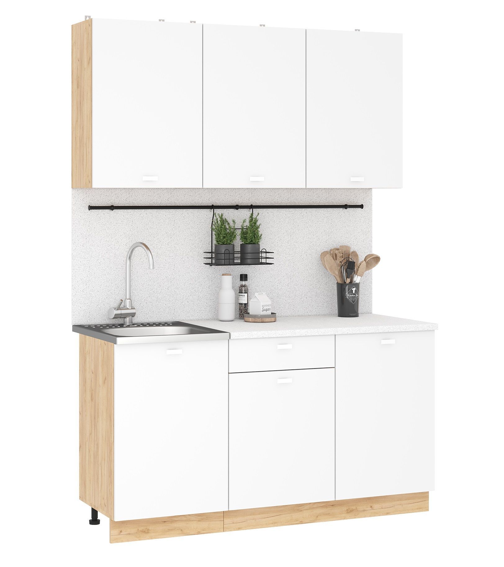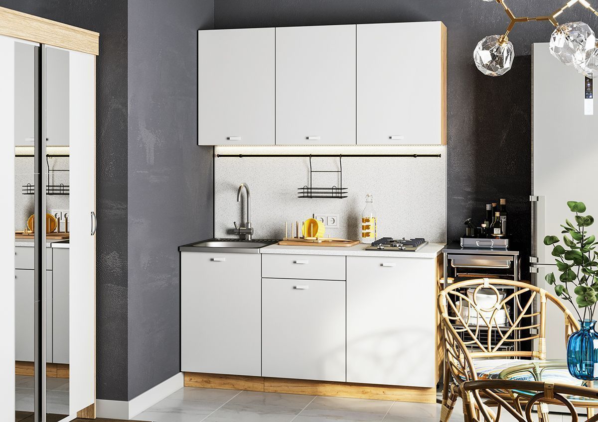 Кухонный гарнитур Дана - практичный комплект из ЛДСП длиной 1,5 метра в современном стиле спроектирован для удобного ежедневного использования.