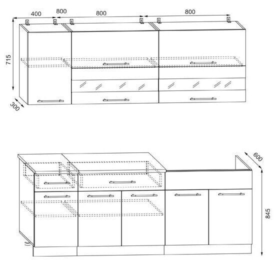 - Верхние модули: ШВ 800, ШВ 800, ШВ 400