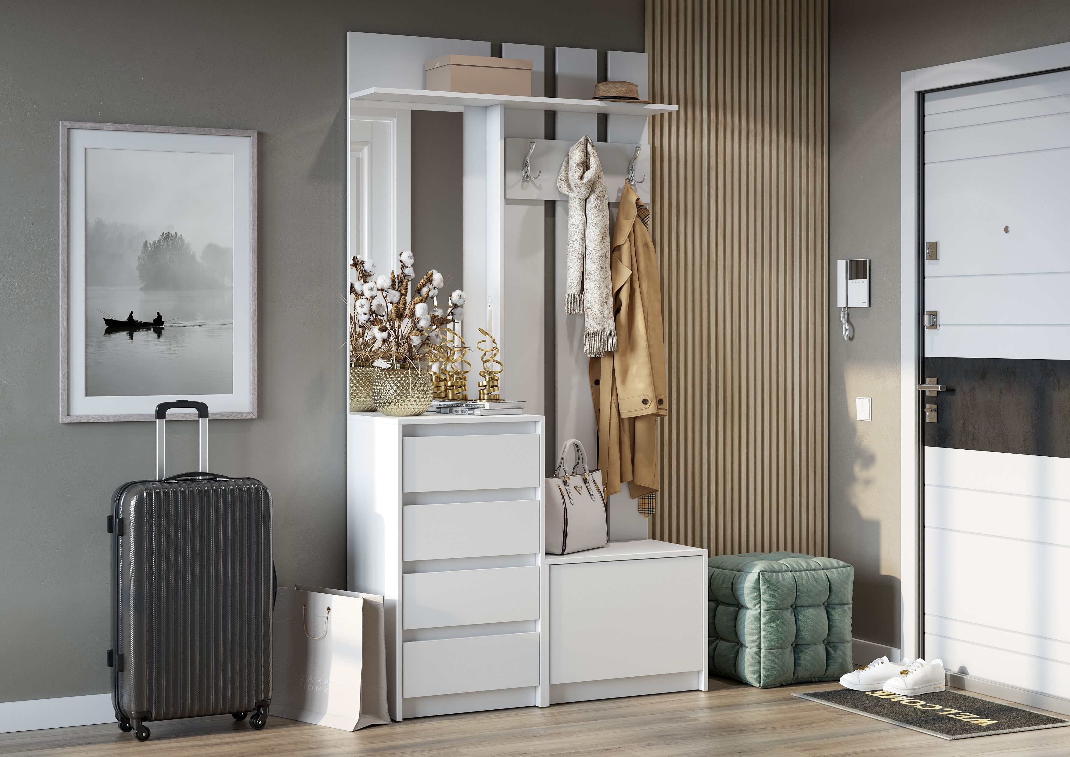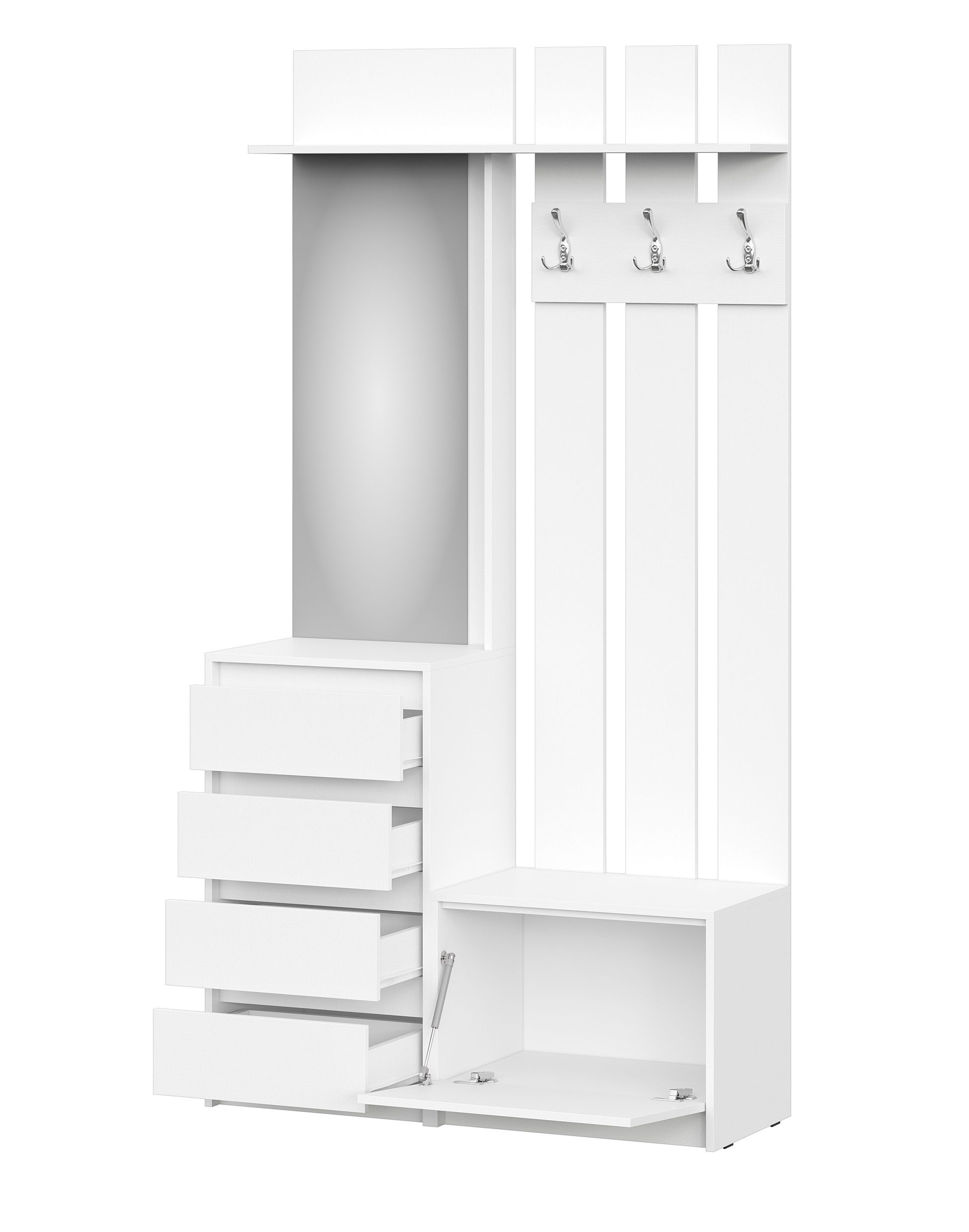 - Вешалка выполнена полностью без ручек, ящики открываются с помощью захвата рукой, на дверцах установлена система открывания PUSH-TO-Open.