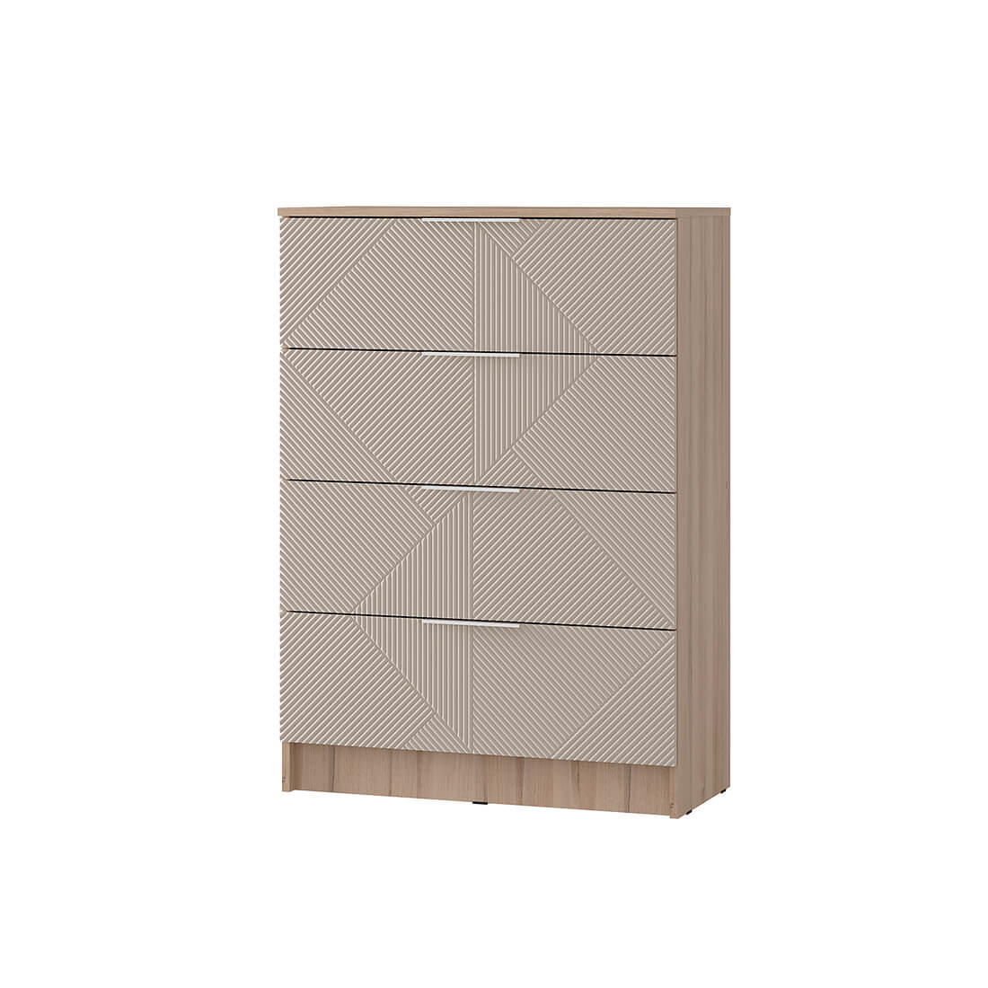 Комод "Эмилия" КМ-02 обладает четырьмя просторными ящиками для одежды и белья. Благодаря эргономичным фасадам открывание ящиков становится удобным и лёгким.