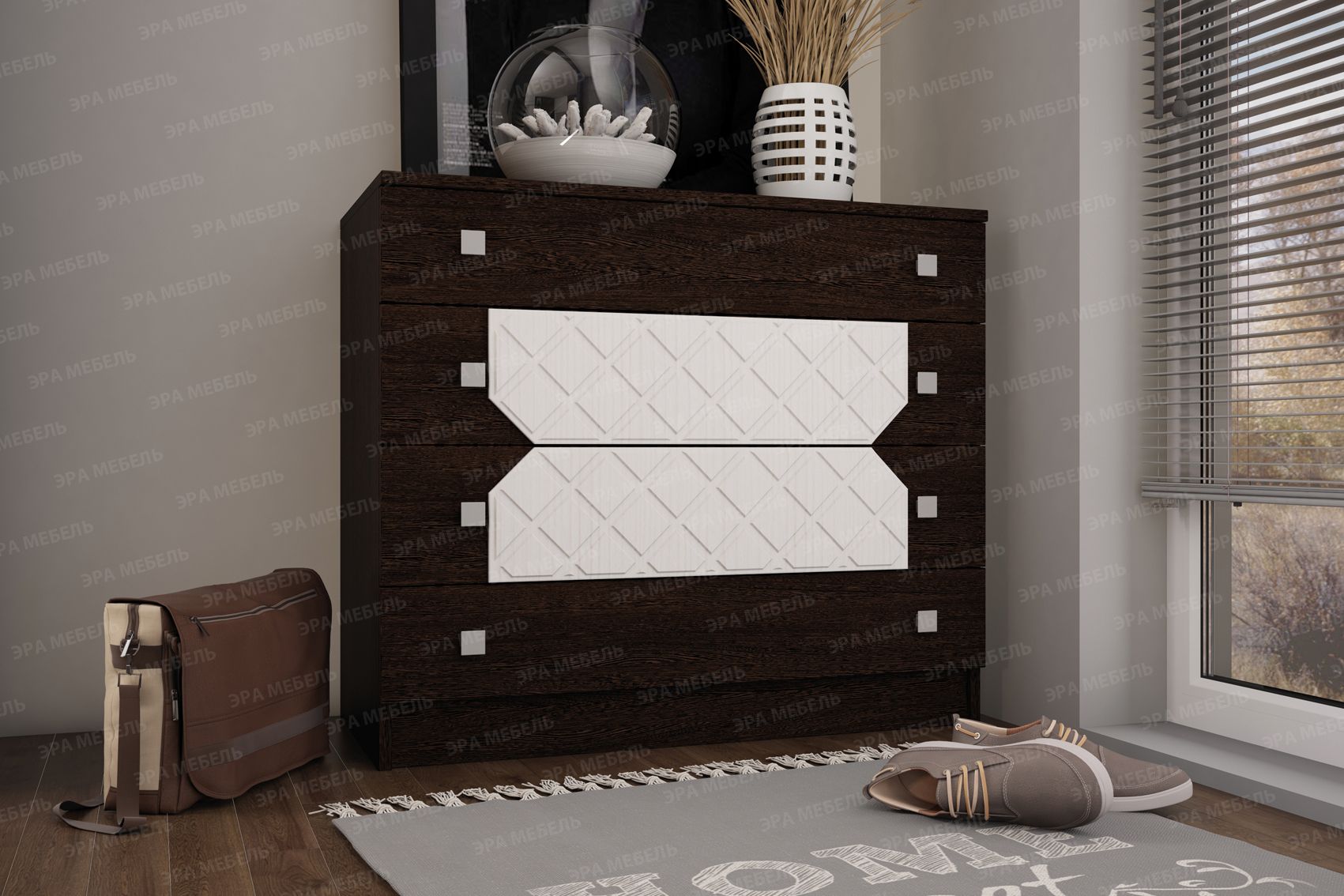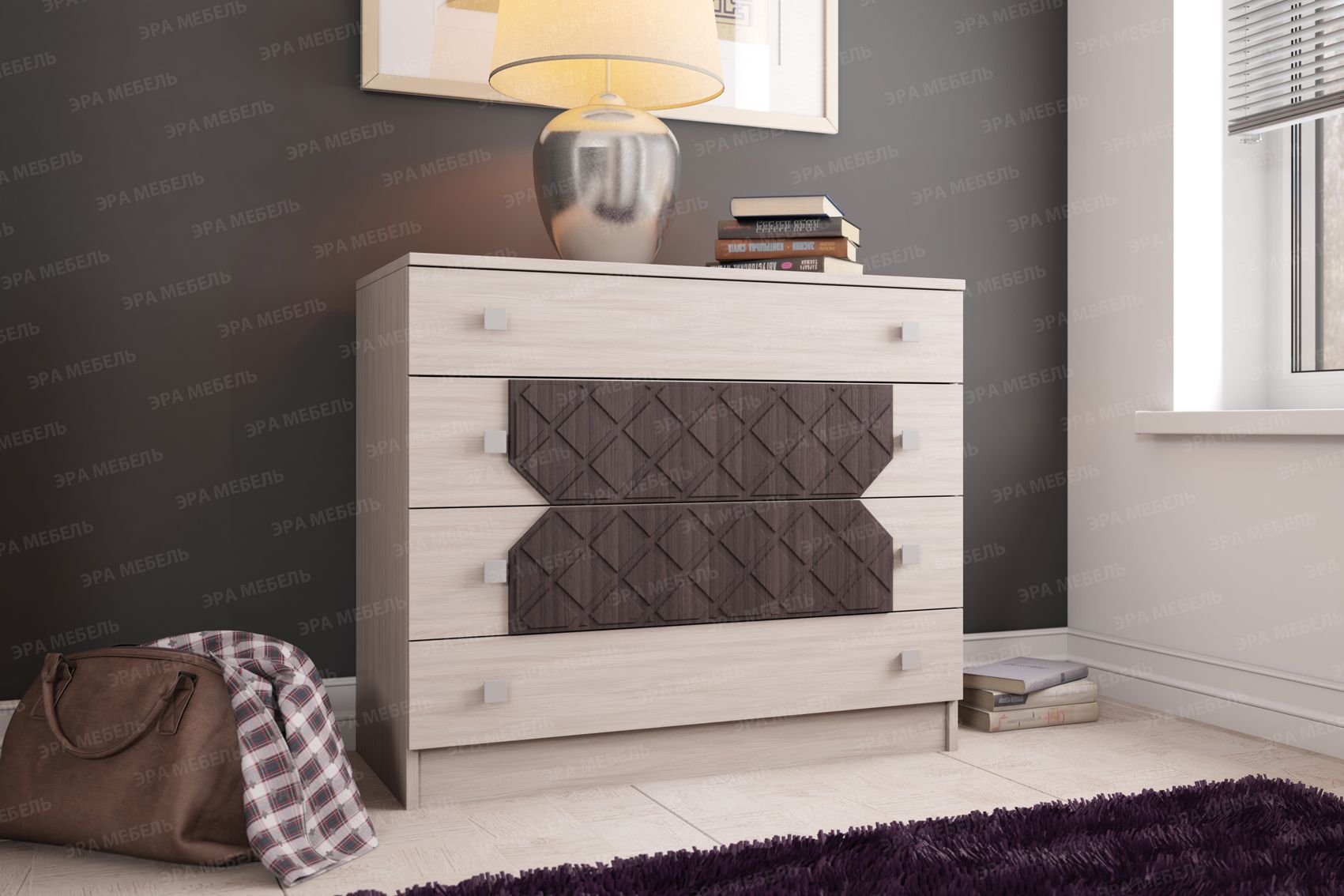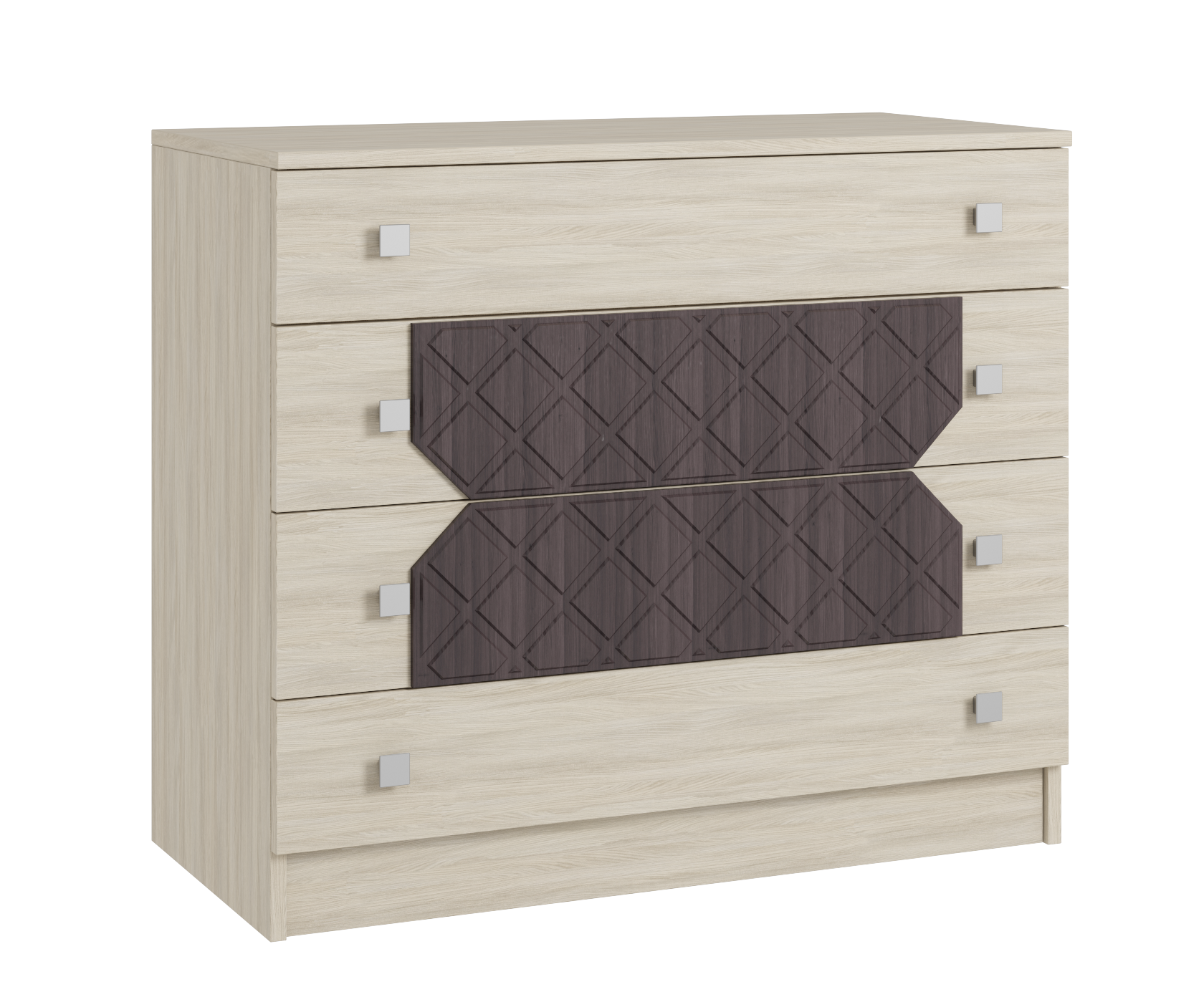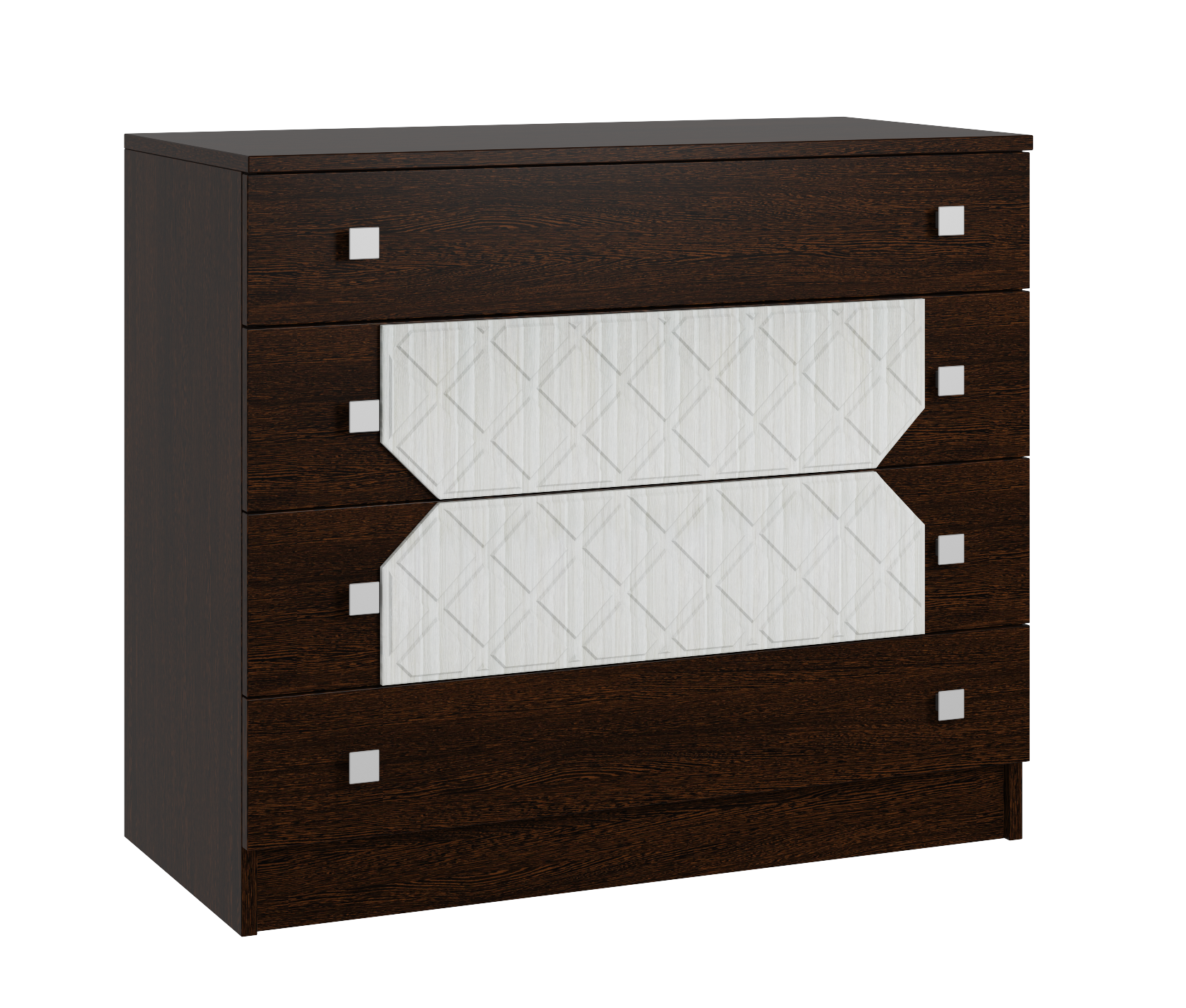 Функциональный комод вместителен. Конструкцией предусмотрены четыре выдвижных ящика с шариковыми направляющими.
