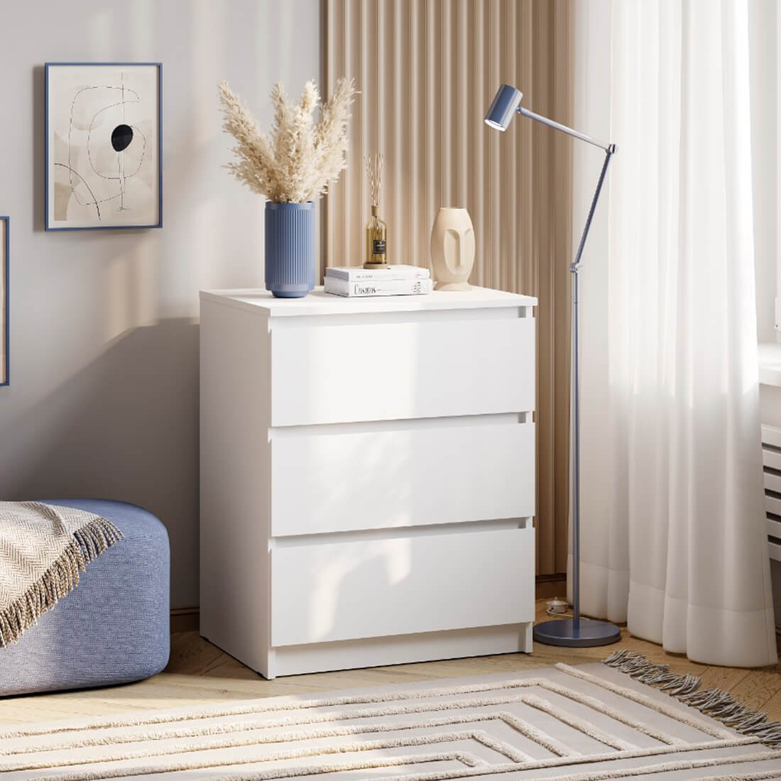 Комод «Симпл» (КМ-01) — компактный и вместительный комод с тремя выдвижными ящиками, которые открываются бесшумно за счет шариковых направляющих. Идеальная модель для хранения постельного белья и легкой одежды, а также различных мелочей. На столешнице можно разместить торшер, книги и косметику.