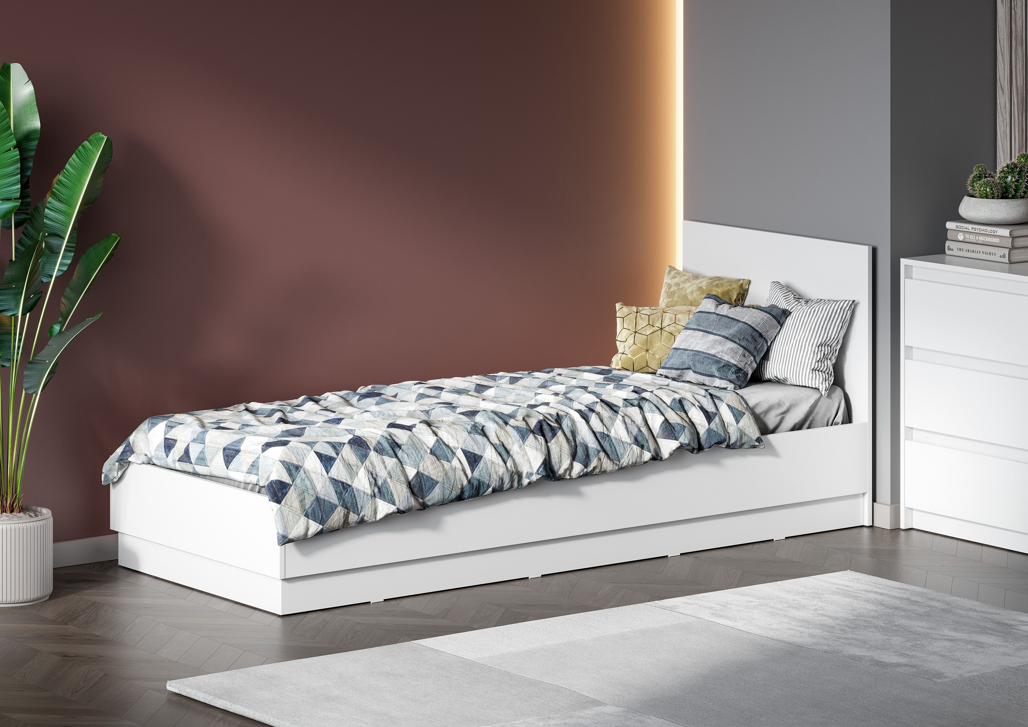 Кровать Айден выполнена в стиле минимализм.