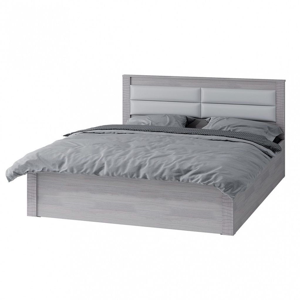 Кровать "Монако" КР-16 1,6 м отличается оригинальным дизайном: мягкая спинка встроена в головной щиток. Фасад украшен декоративными элементами из МДФ.