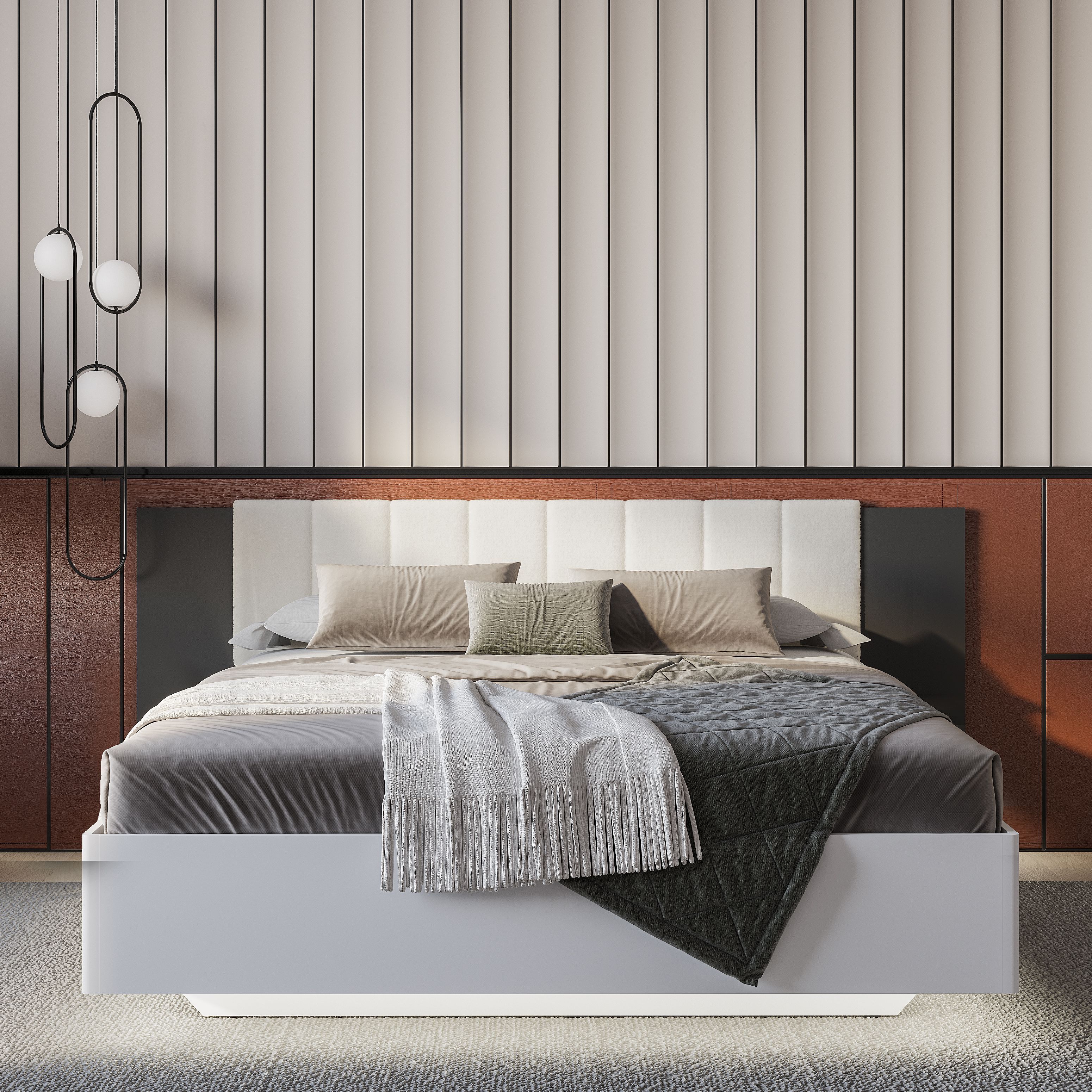 Коллекция "Шарм" - современная классика в контрастном исполнении "белый/графит". Кровать с парящим эффектом в трендовой ткани "барашек" - сердце коллекции.