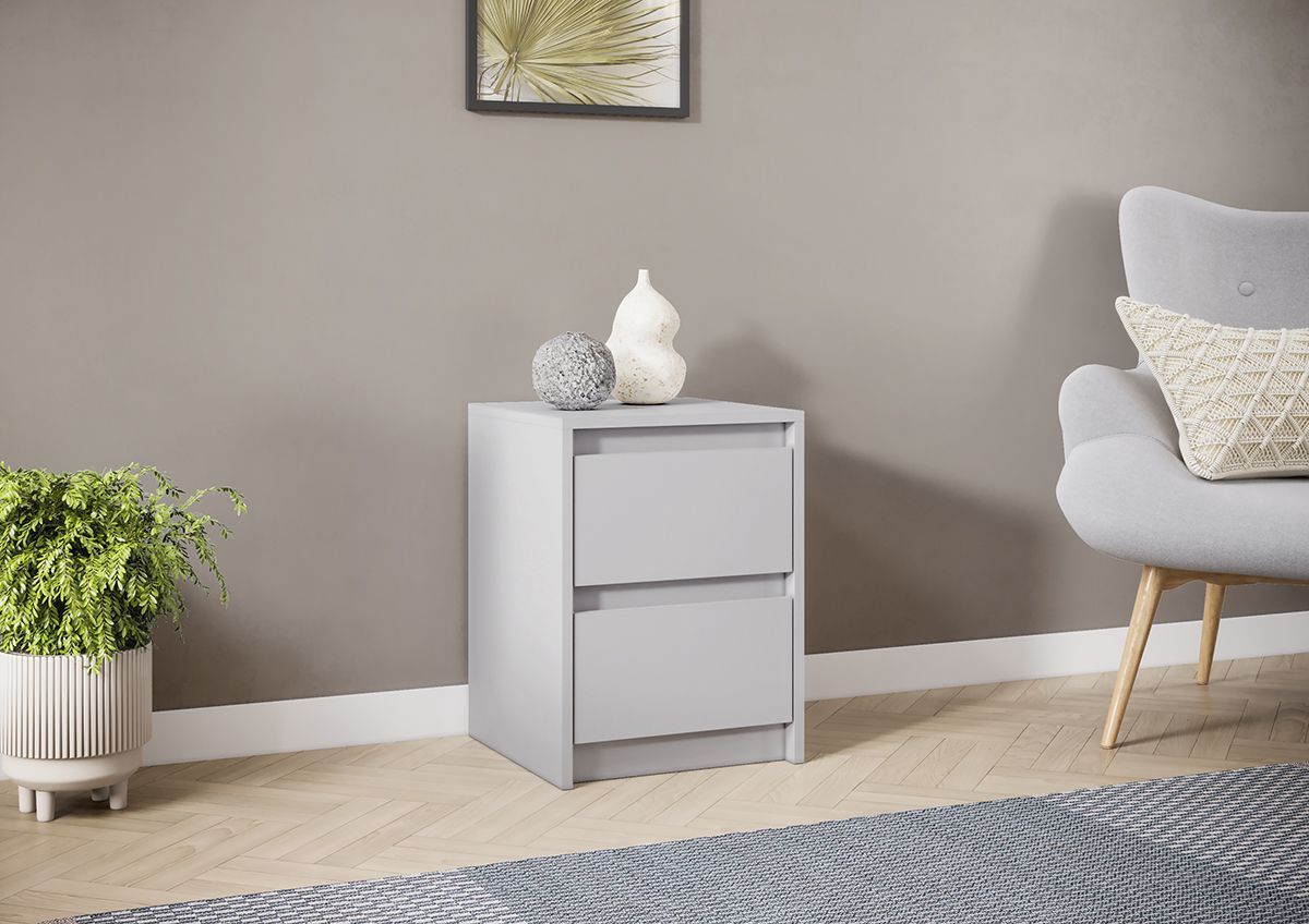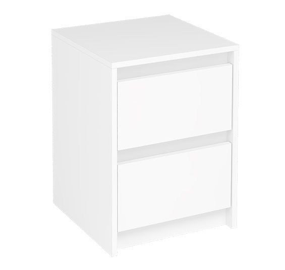 Лицевая фурнитура на тумбе отсутствует. Ящики открываются с помощью захвата рукой.