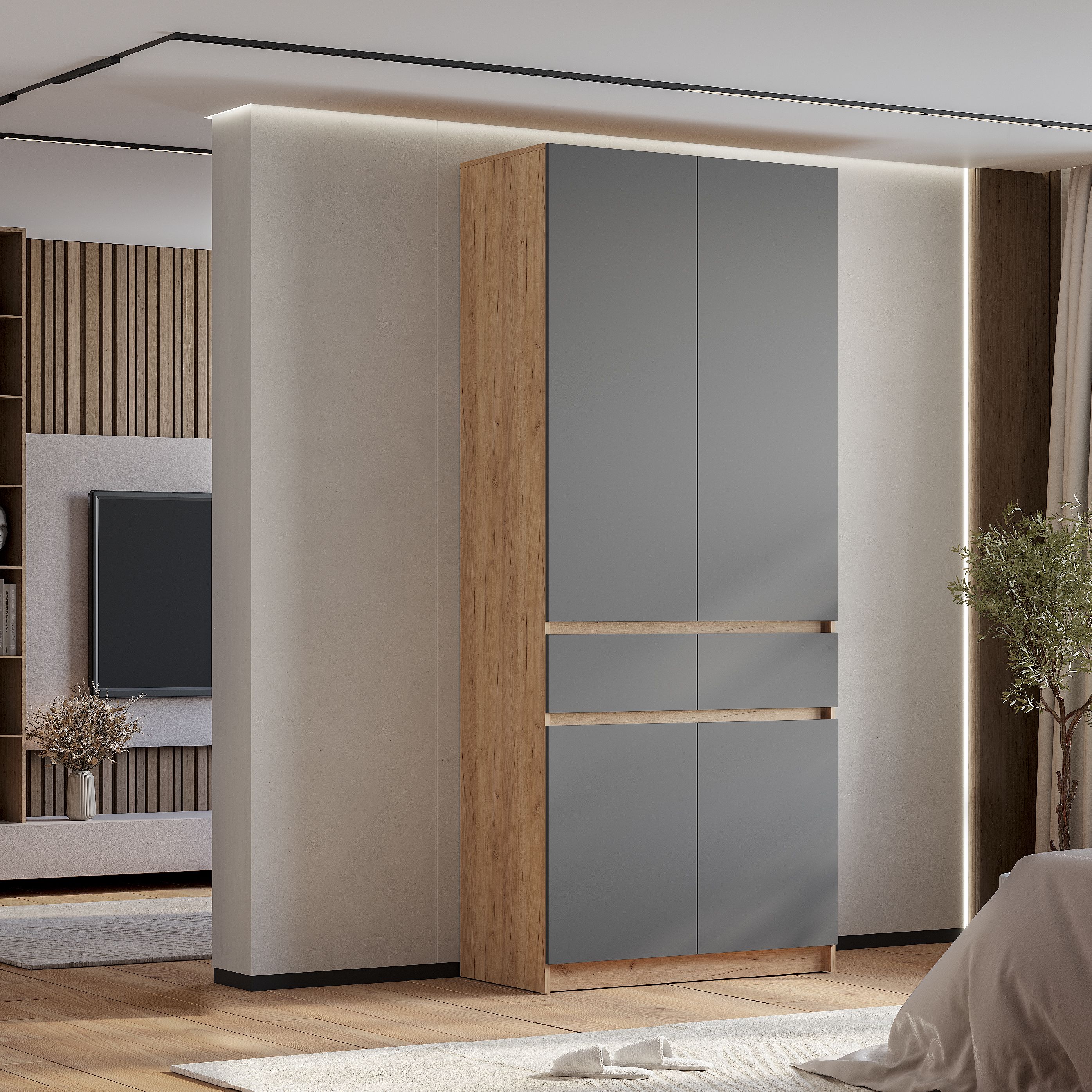 Шкаф 2-х створчатый "Багира" ШК-03 - это стиль и эргономичная конструкция. Хромированная штанга для аккуратного вертикального хранения одежды.