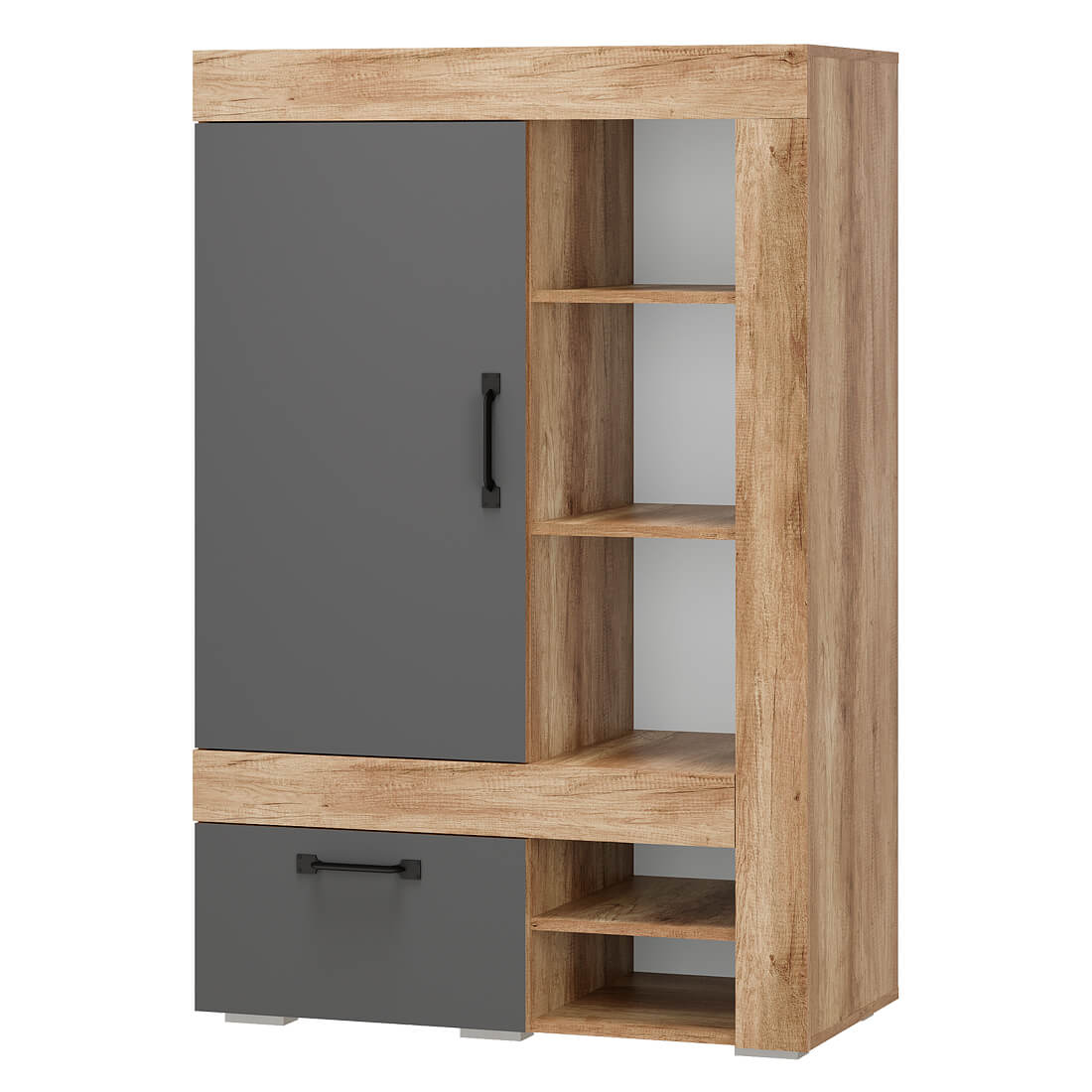 Коллекция "Прима" в модном декоре "дуб каньон/графит" удачно вписывается в городской индустриальный стиль и выглядит очень необычно и оригинально. Приятный корпус под дерево и матовые фасады - такое контрастное сочетание добавит комнате стиля.