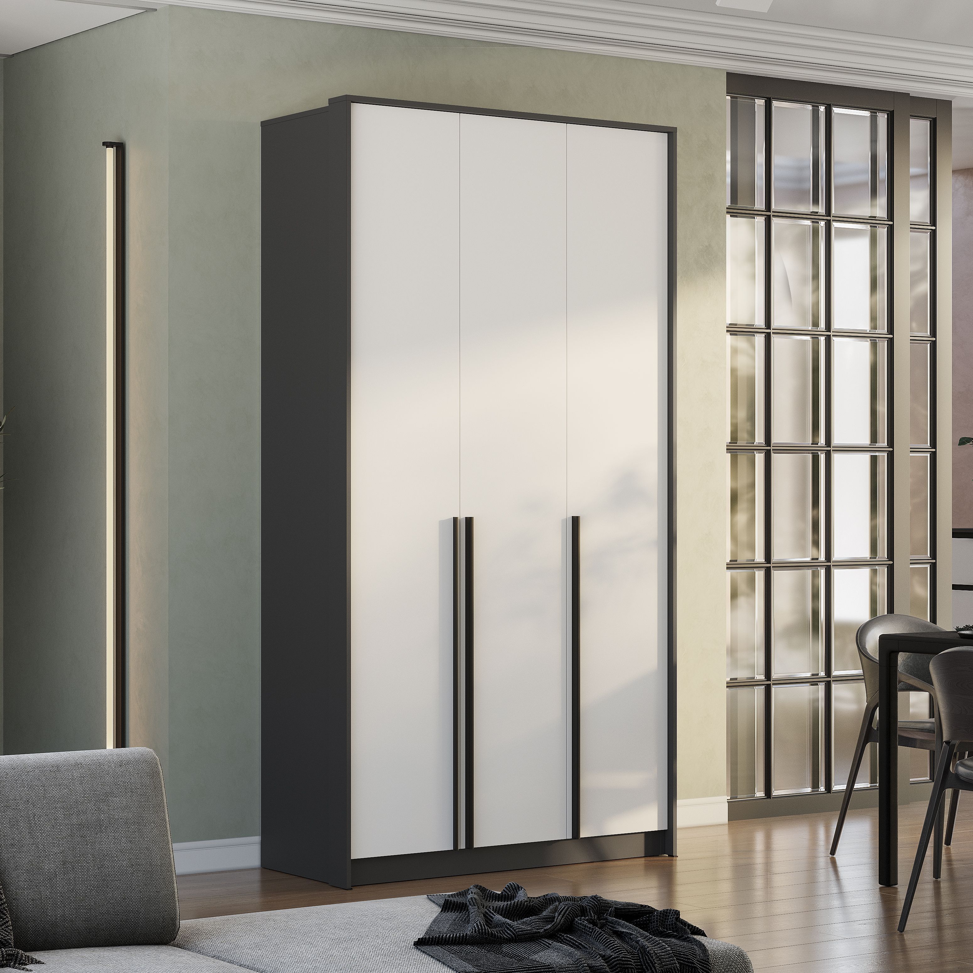 Коллекция "Шарм" - современная классика в контрастном исполнении "белый/графит". Шкаф обретает массивность благодаря монолитному ЛДСП - порталу, дополнен вертикальными черными ручками и надежными петлями с доводчиками. Дополнительно комплектуется полками ПЛ-06 белый.