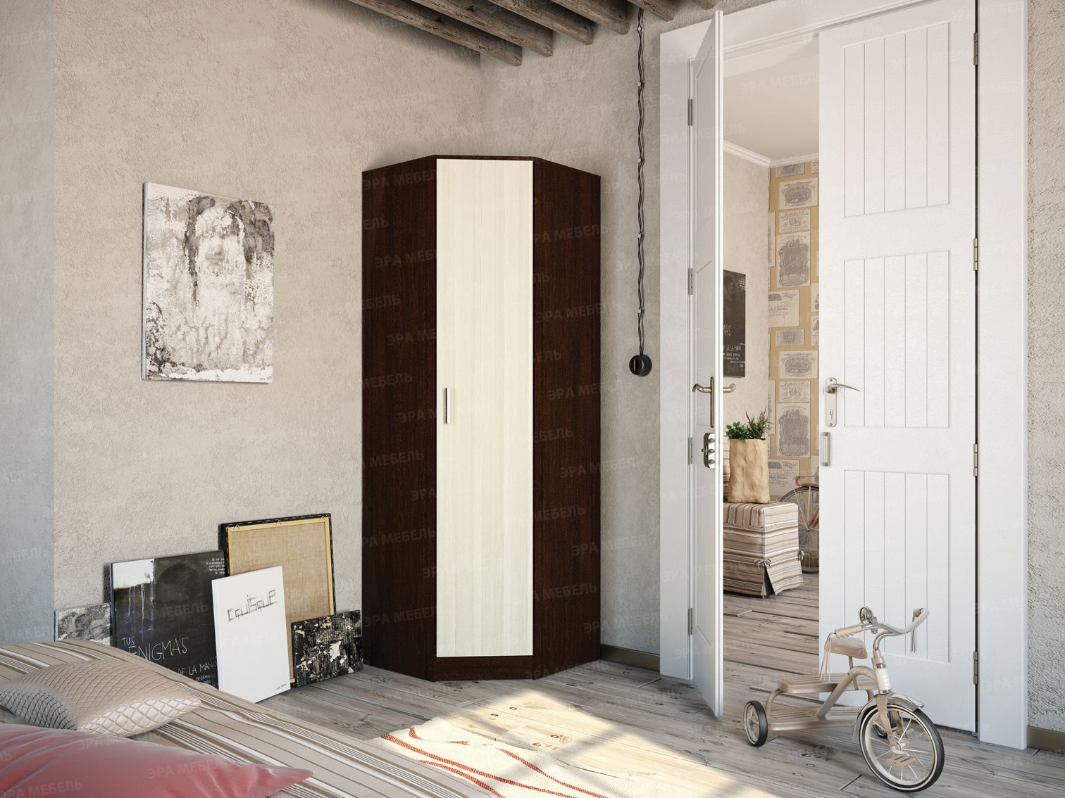 Угловой шкаф привлекает внимание своим элегантным сдержанным дизайном и отличной функциональностью. Этот предмет изготовлена из ЛДСП, отличается хорошими эксплуатационными характеристиками.