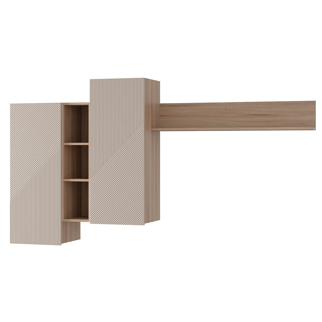 Гостиный модуль "Эмилия" ГМ-12 включает в себя ассиметричные шкафчики и длинную стильную рейку, что придает дизайну коллекции индивидуальность.